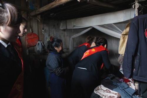 一进门,林站长就与老两口聊起了家常,并送上慰问金。而年轻人开始忙活儿,打扫屋子、整理脏衣服,看着她们忙碌的样子,老两口笑得合不拢嘴。老人说:“就是自己的女儿也做不到啊。”