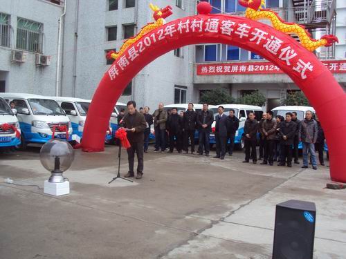 仪式上,陈副县长、陆局长分别做了重要讲话,指出了村村通客运工程对屏南的发展起到重要的作用,并指出做好村村通客运是今后工作的重中之重。屏南分公司戴祖松经理也做出了明确表态,今后,公司将把“村村通客运”工作摆上议事日程,坚持树立“以人为本,安全第一、以客为主,优质便捷”的原则,强化对农村客的安全管理,杜绝超员超载、疲劳驾驶、酒后驾驶等安全隐患。同时加强企业内部管理,把好源头安全关口;抓好农村客运车辆的技术管理,落实专人负责建立和完善车辆技术档案,确保农村客运车辆技术状况良好;同时加强驾乘人员安全教育,增强安全意识和文明行车意识,最大限度满足群众出行需要,让群众走的安心,走的放心。