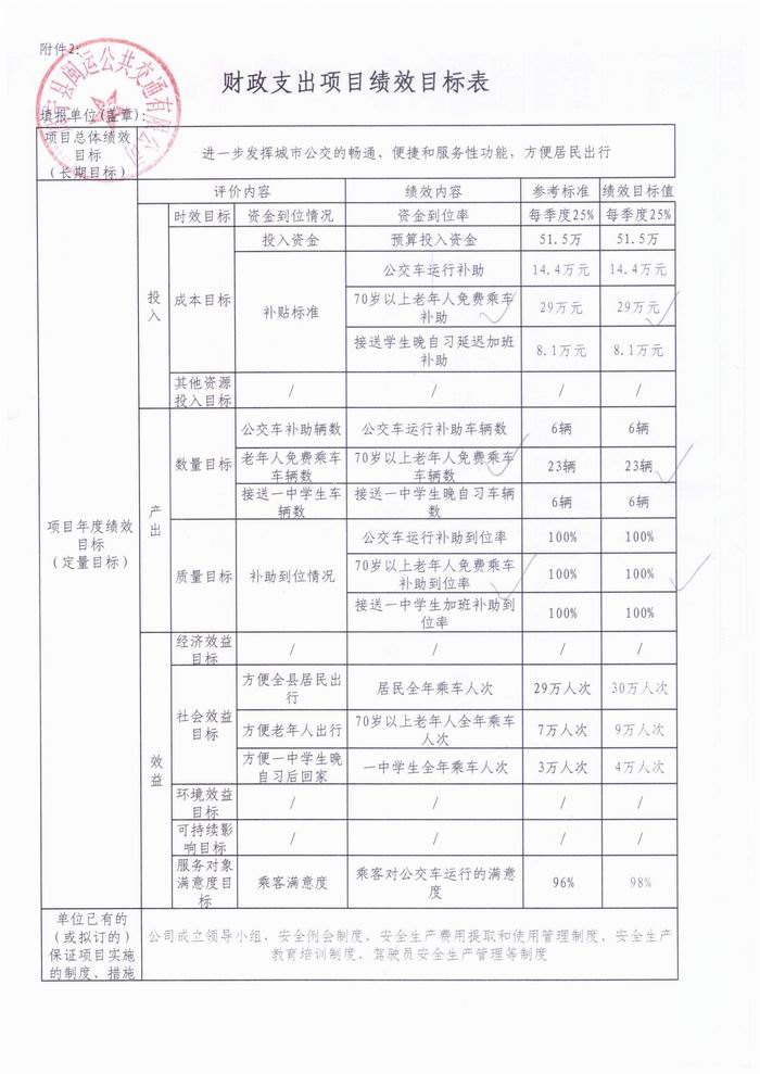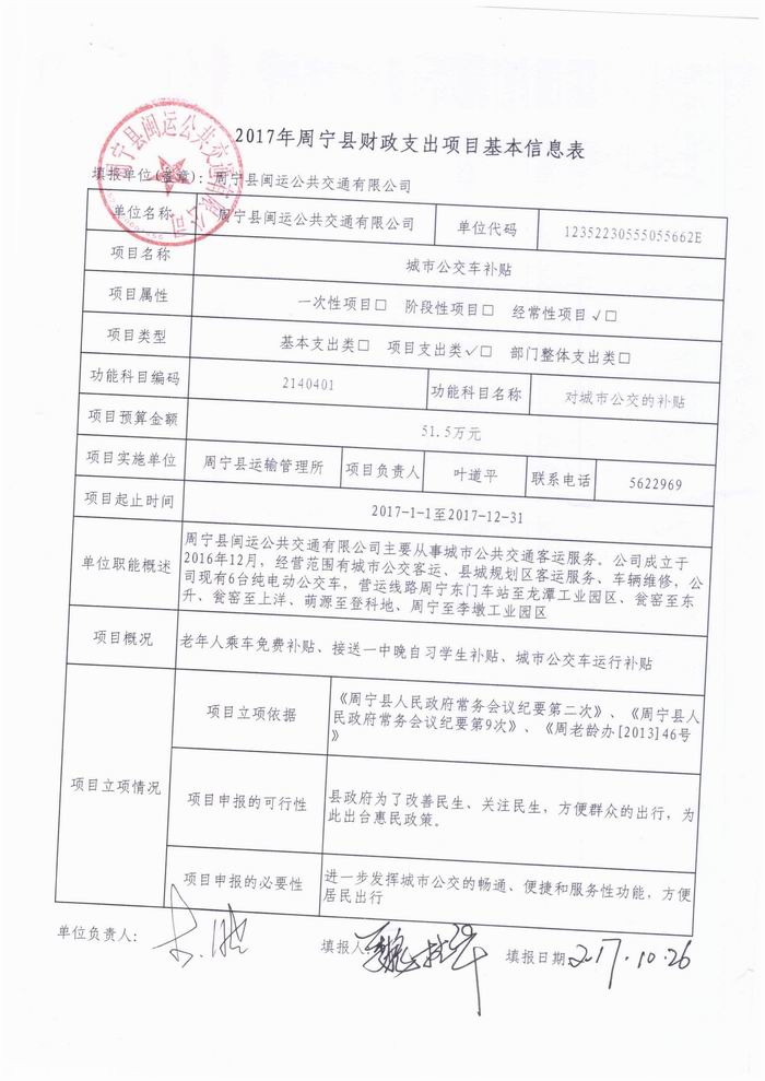 周宁县闽运公共交通有限公司城市公交车补贴《财政支出项目基本信息表》、《财政支出项目绩效目标表》公示